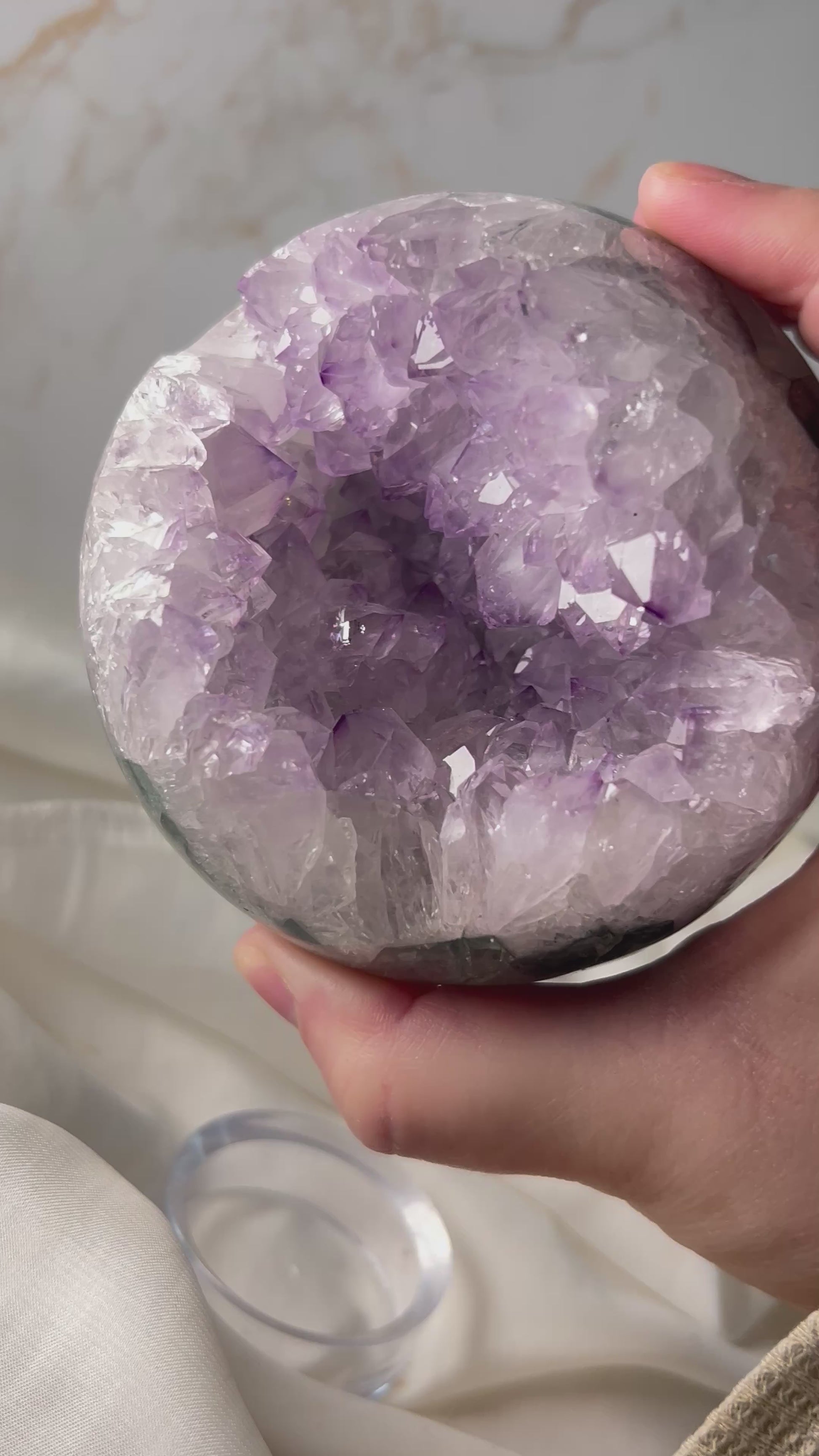 Amethyst Sphere with Natural Green Inclusions – Radiant Clarity & Earth Energy