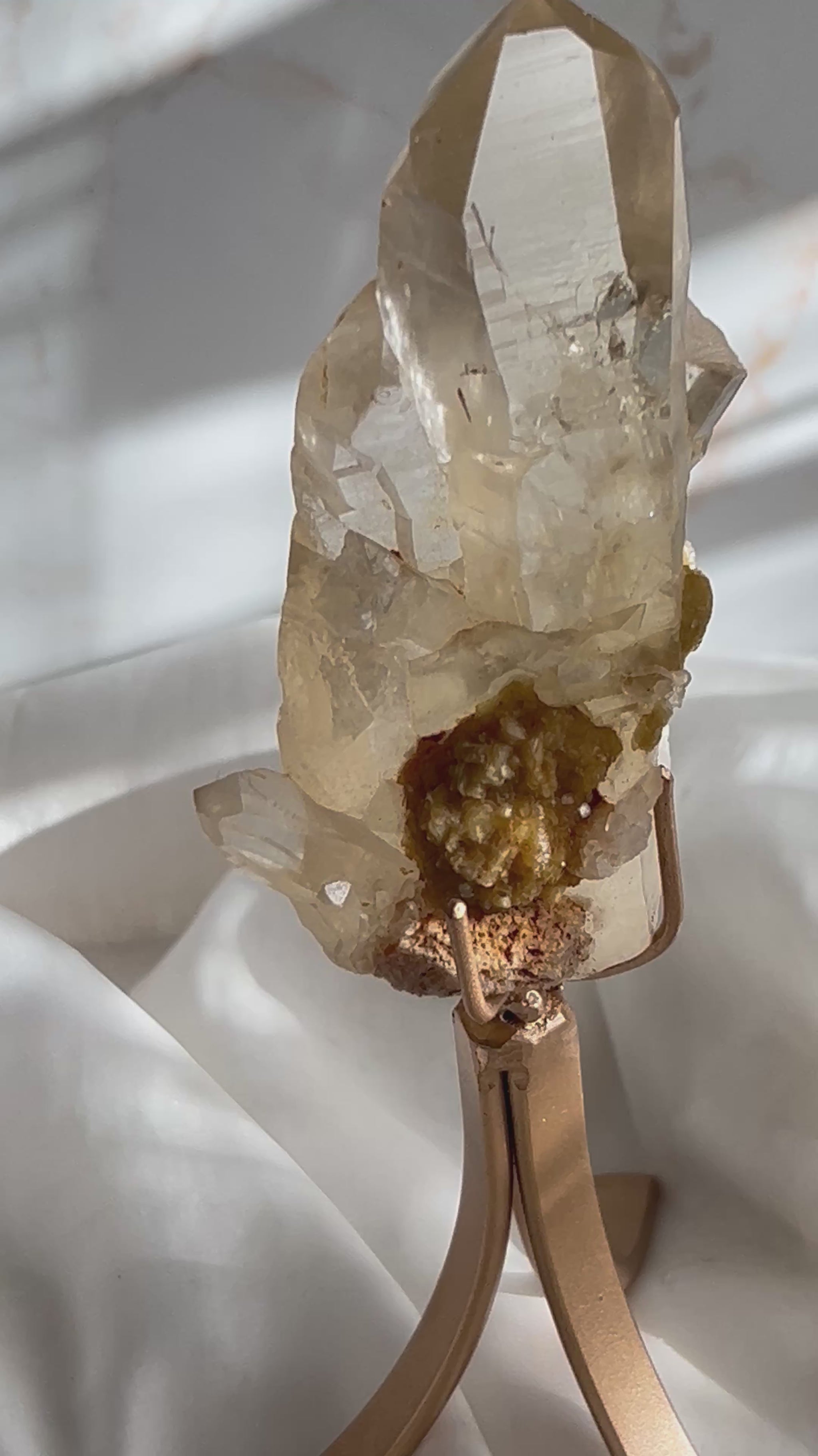 Cathedral Citrine with Albite & Muscovite – Natural Brazilian Golden Quartz Cluster | Custom stand included