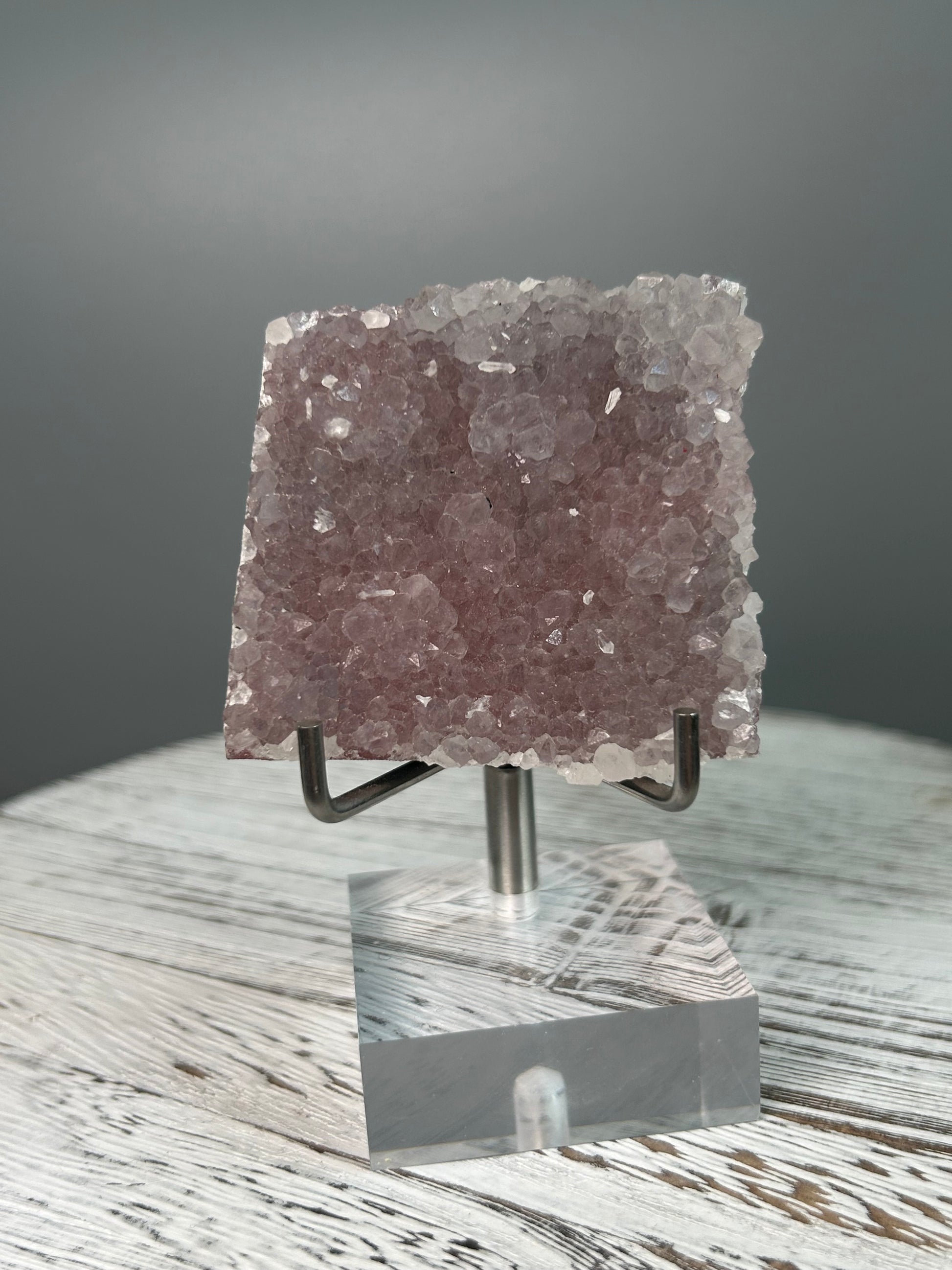 Chalcedony is known as a stone of gentle communication and emotional balance. It’s believed to soften tension, ease the mind, and support peaceful self-expression. The pink and purple undertones in this material offer an added layer of warmth and intuitive energy, a quiet, heart-led clarity that helps reconnect thought and feeling.
