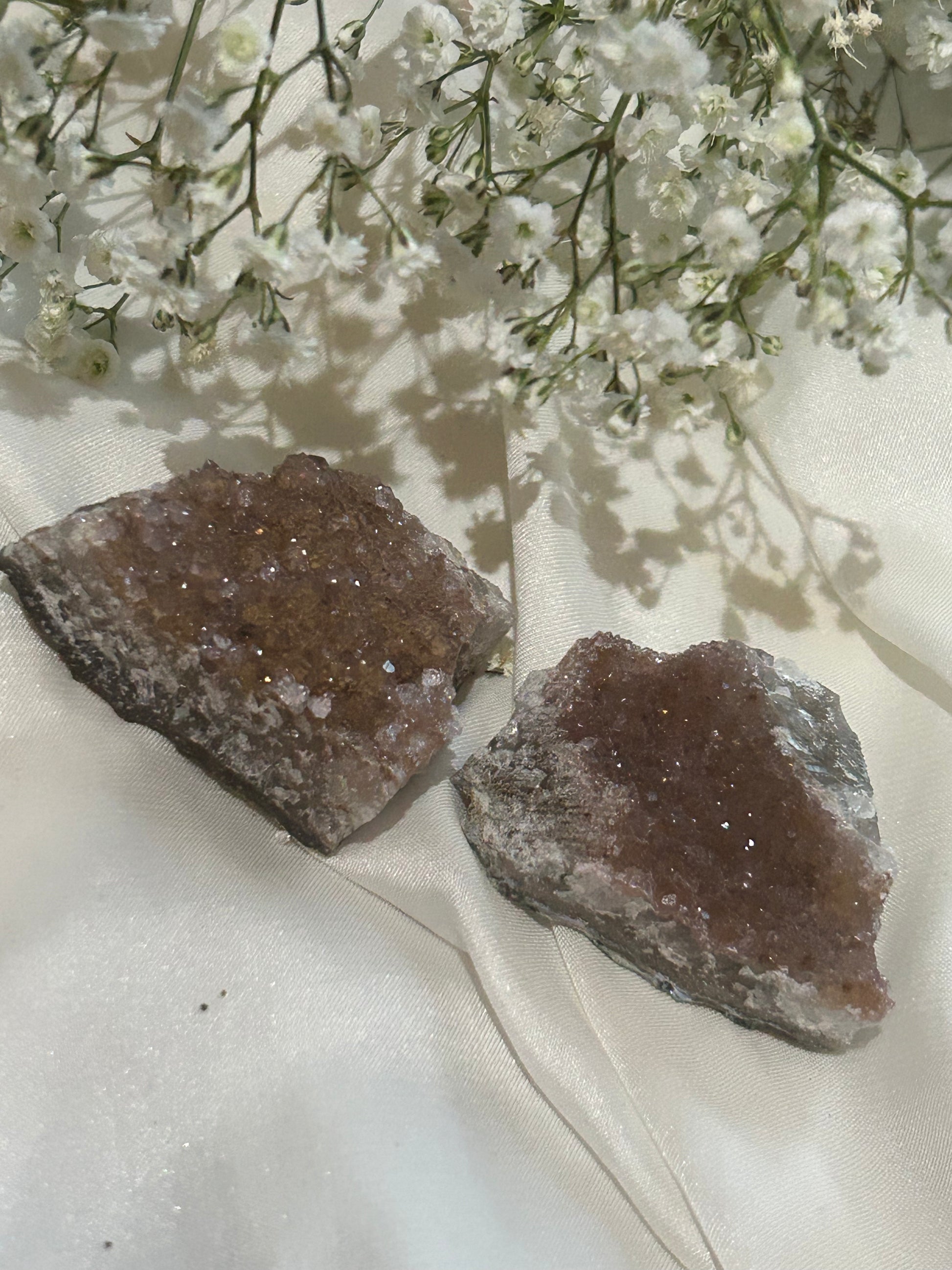 Two rainbow amethyst mini clusters