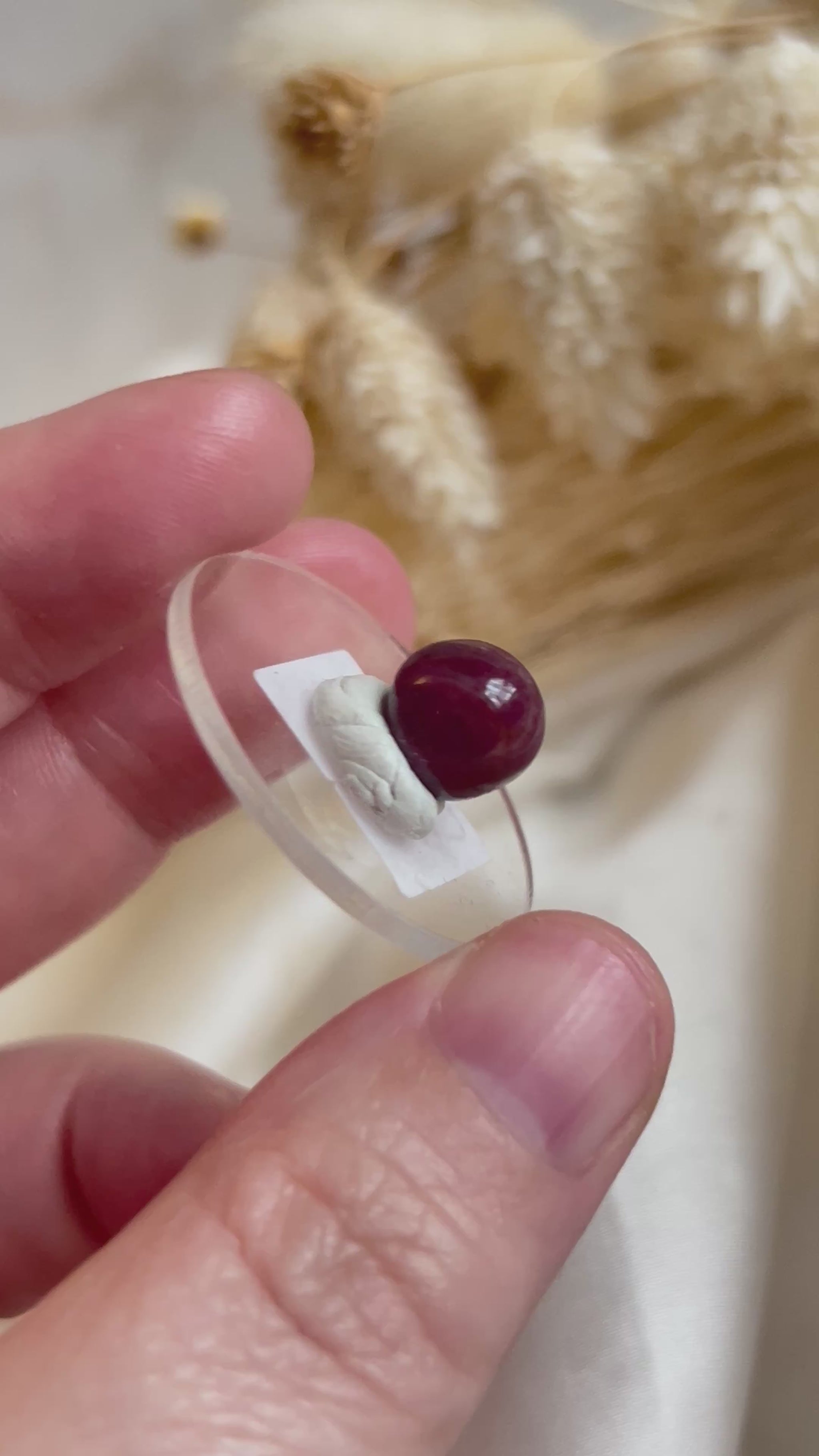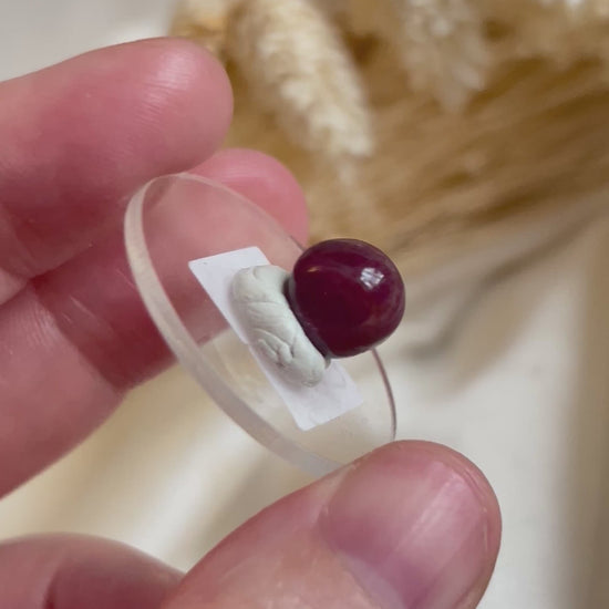 This vivid Ruby cabochon radiates with deep magenta-red tones, alive with warmth and quiet intensity. Each polished gem carries its own story within the colour m, a balance of passion and peace, of strength softened by compassion.