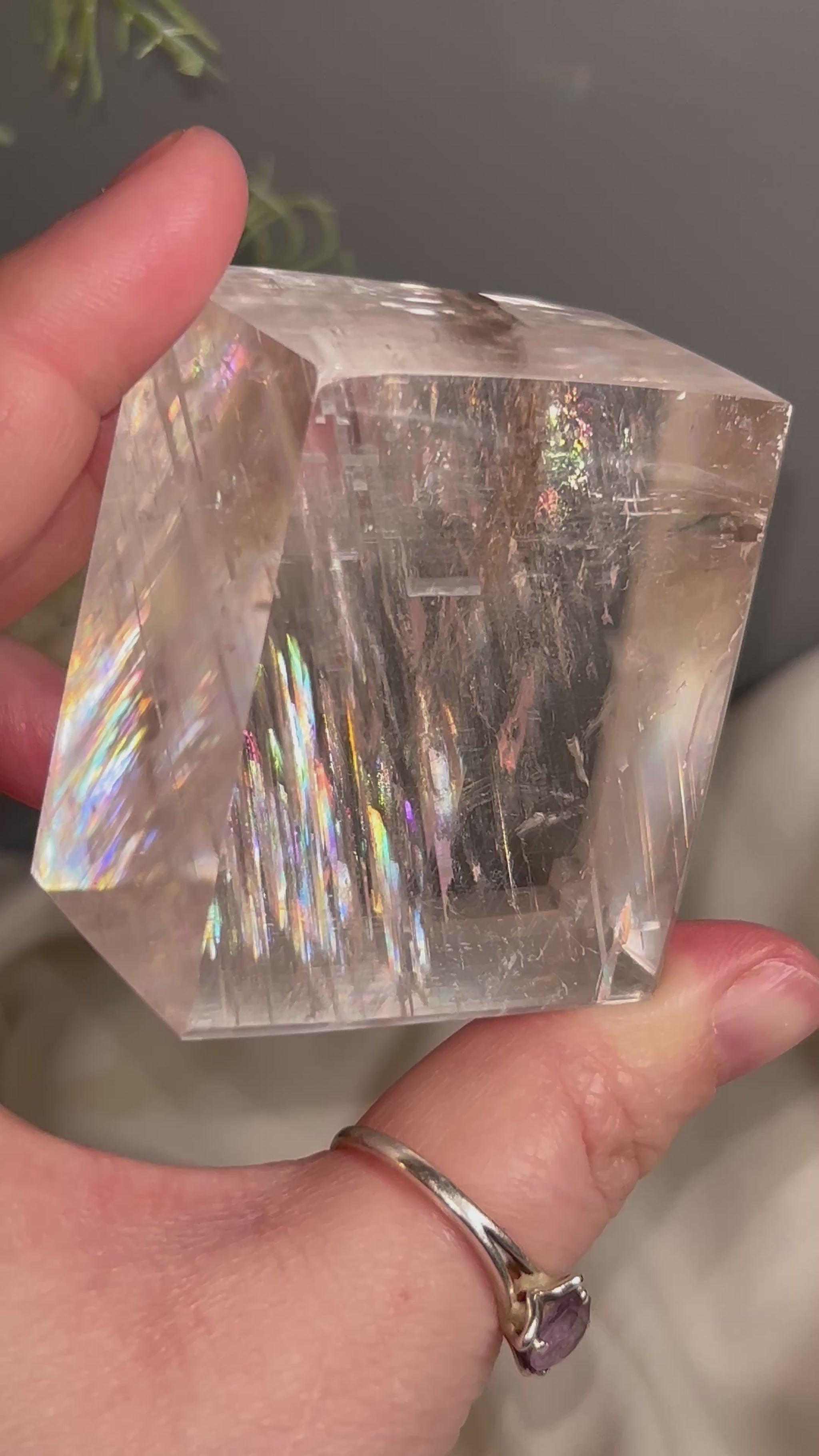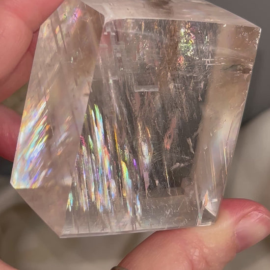 Optical Calcite Cube — Clear Iceland Spar Crystal | Rainbow Flashes