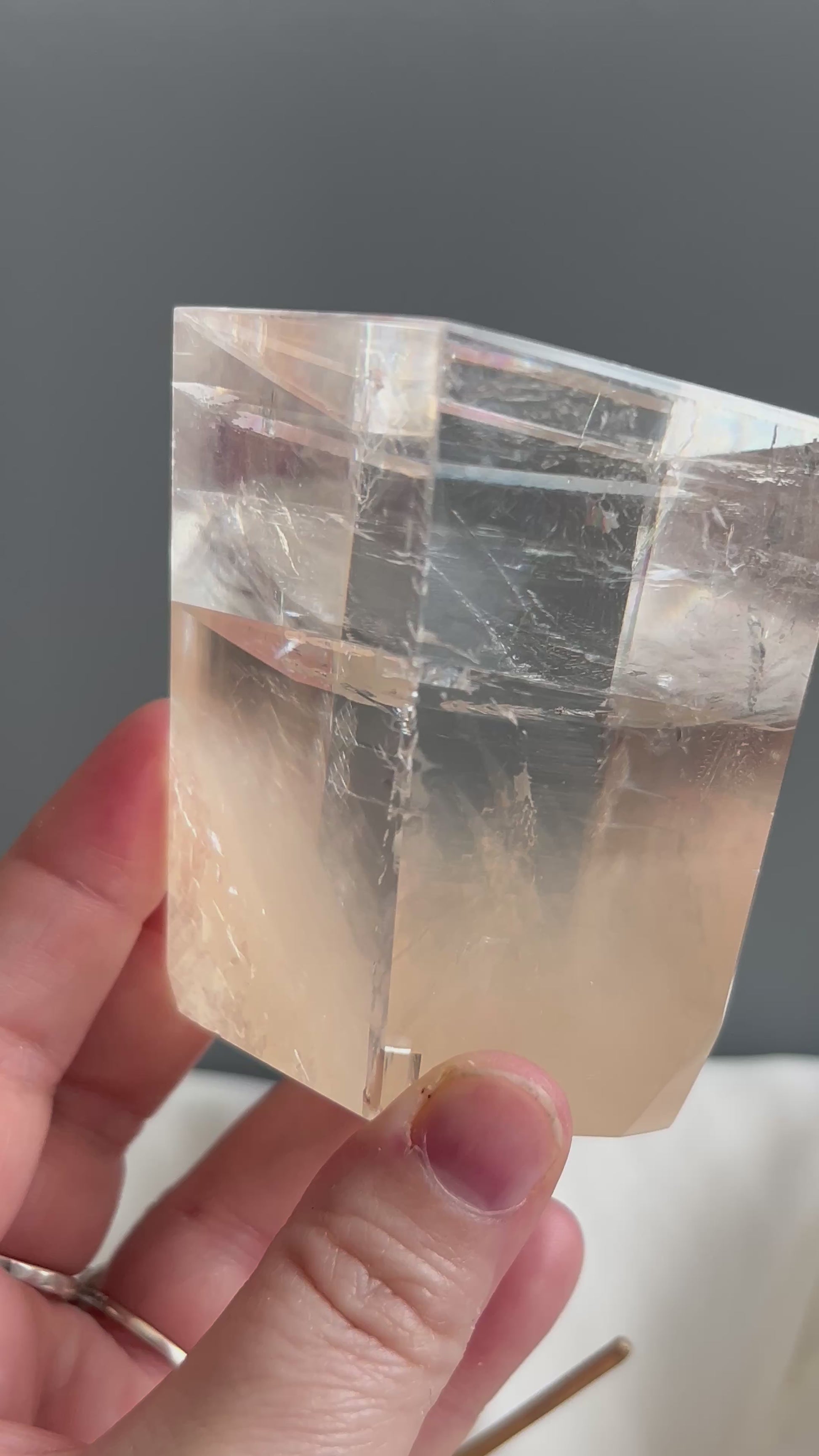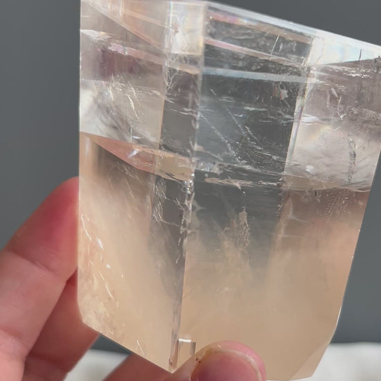 These Optical Calcite crystals are beautifully clear and naturally light-reflective, each one showcasing internal rainbows and double refraction unique to this mineral. Often called Iceland Spar, these pieces are prized for their ability to bend and split light, symbolising clarity and truth in both energy and form.