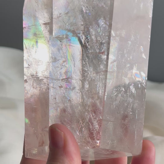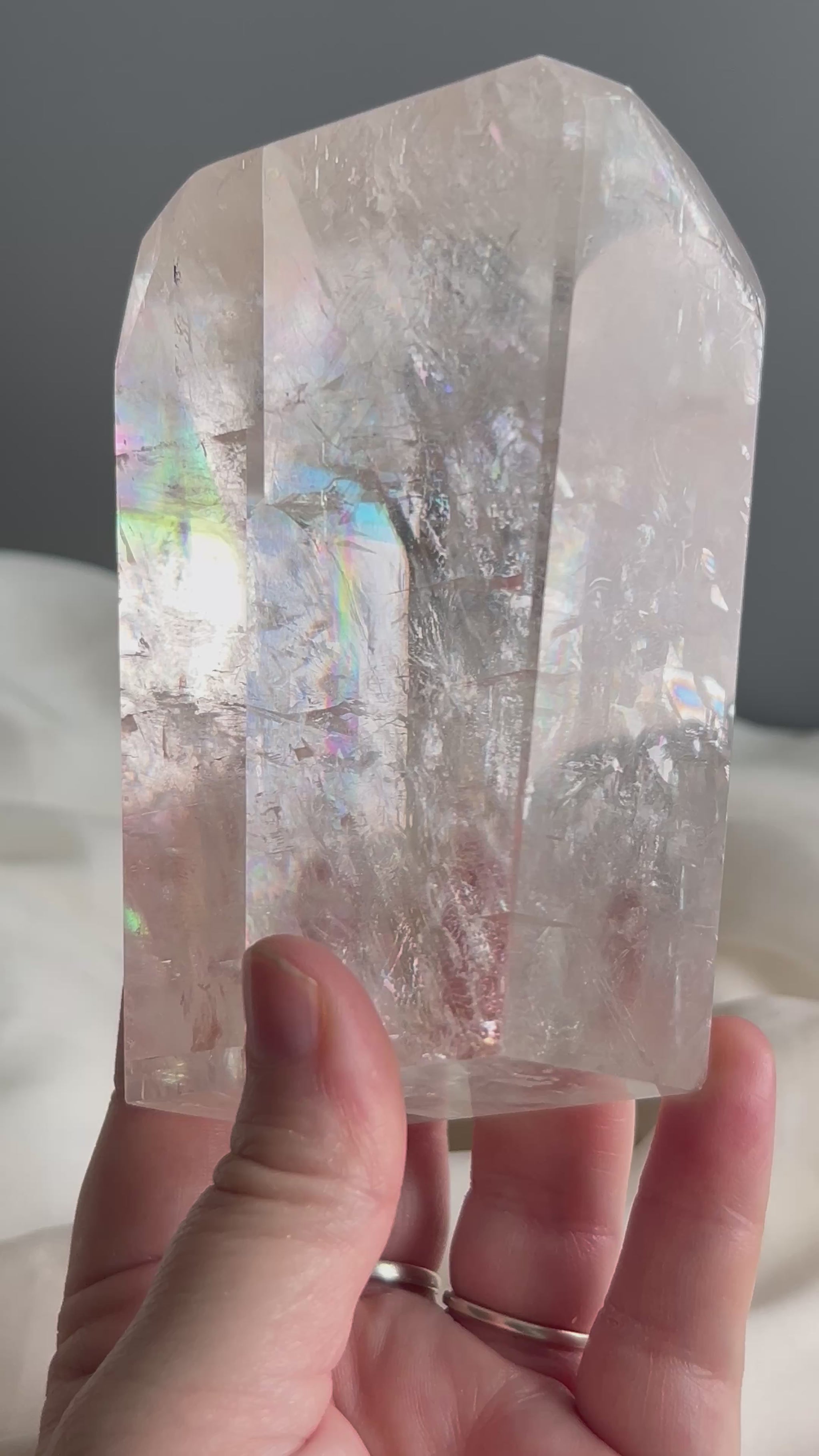 These Optical Calcite crystals are beautifully clear and naturally light-reflective, each one showcasing internal rainbows and double refraction unique to this mineral. Often called Iceland Spar, these pieces are prized for their ability to bend and split light, symbolising clarity and truth in both energy and form.