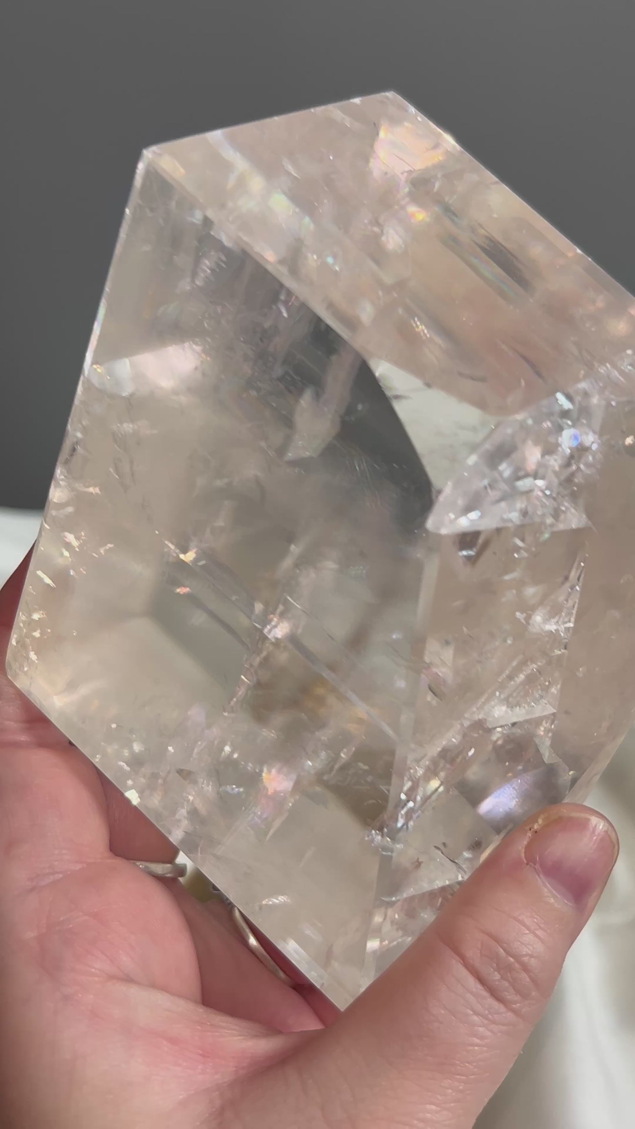 These Optical Calcite crystals are beautifully clear and naturally light-reflective, each one showcasing internal rainbows and double refraction unique to this mineral. Often called Iceland Spar, these pieces are prized for their ability to bend and split light, symbolising clarity and truth in both energy and form.