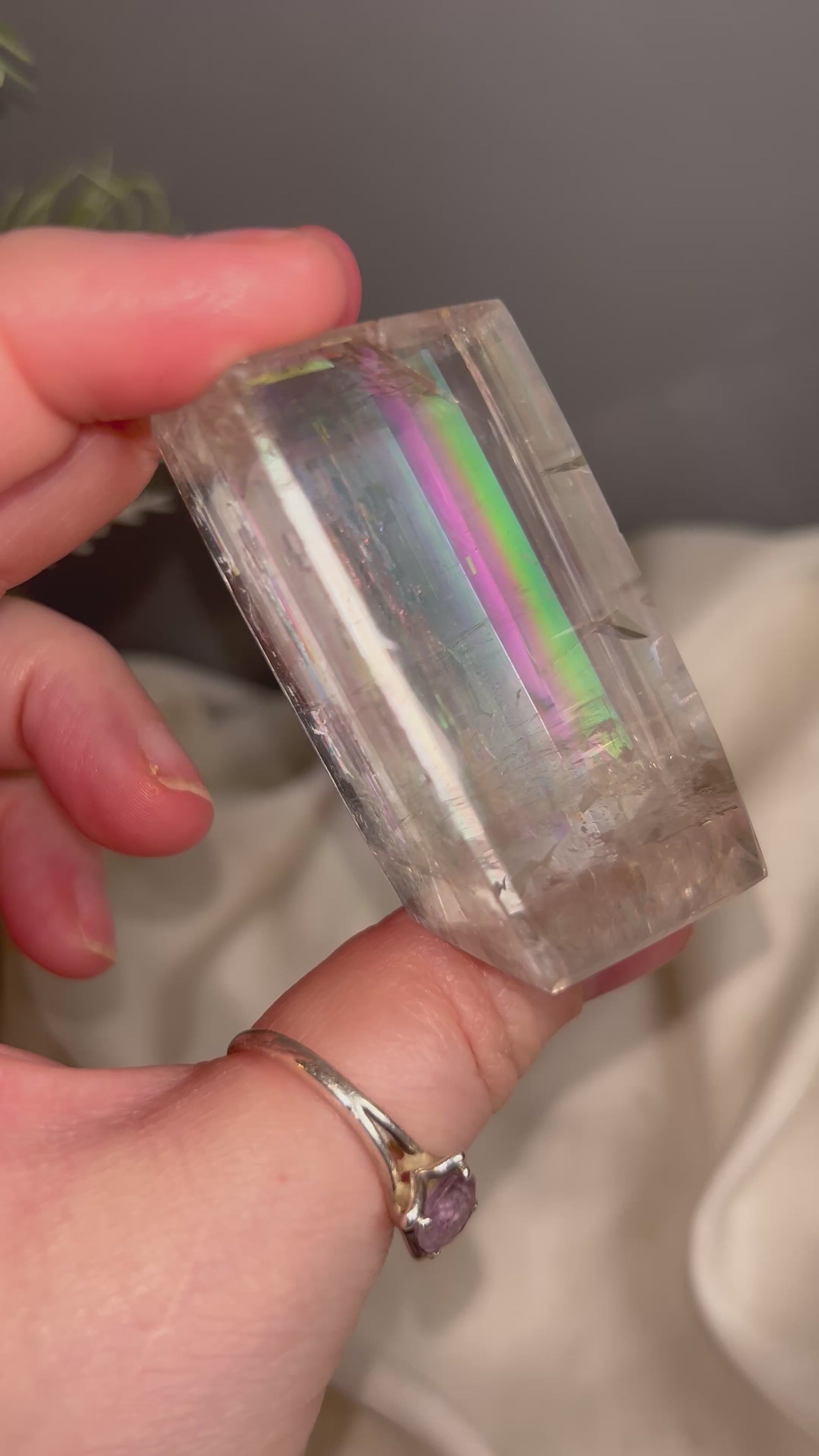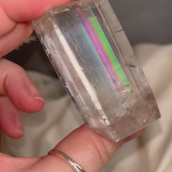 These Optical Calcite crystals are beautifully clear and naturally light-reflective, each one showcasing internal rainbows and double refraction unique to this mineral. Often called Iceland Spar, these pieces are prized for their ability to bend and split light, symbolising clarity and truth in both energy and form.