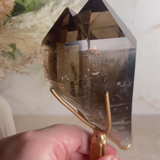 Mounted on an elegant display stand, each piece becomes a sculptural mineral specimen, perfect for collectors, crystal enthusiasts, or those drawn to the grounding presence of smoky quartz.